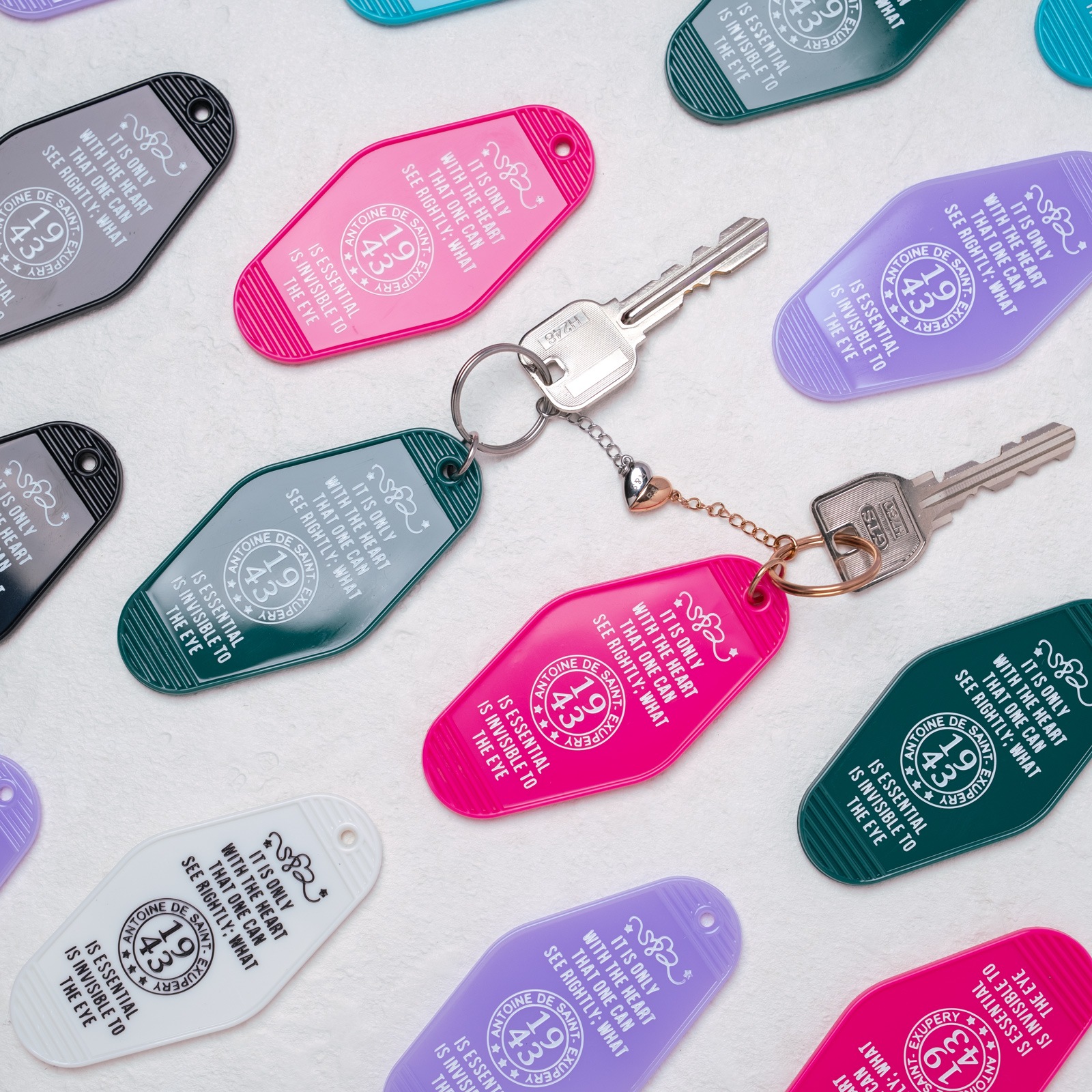 フランスの作家「サン=テグジュペリ」(代表作は『星の王子さま』)の名言をメインのテーマとしたペアキーホルダーです。